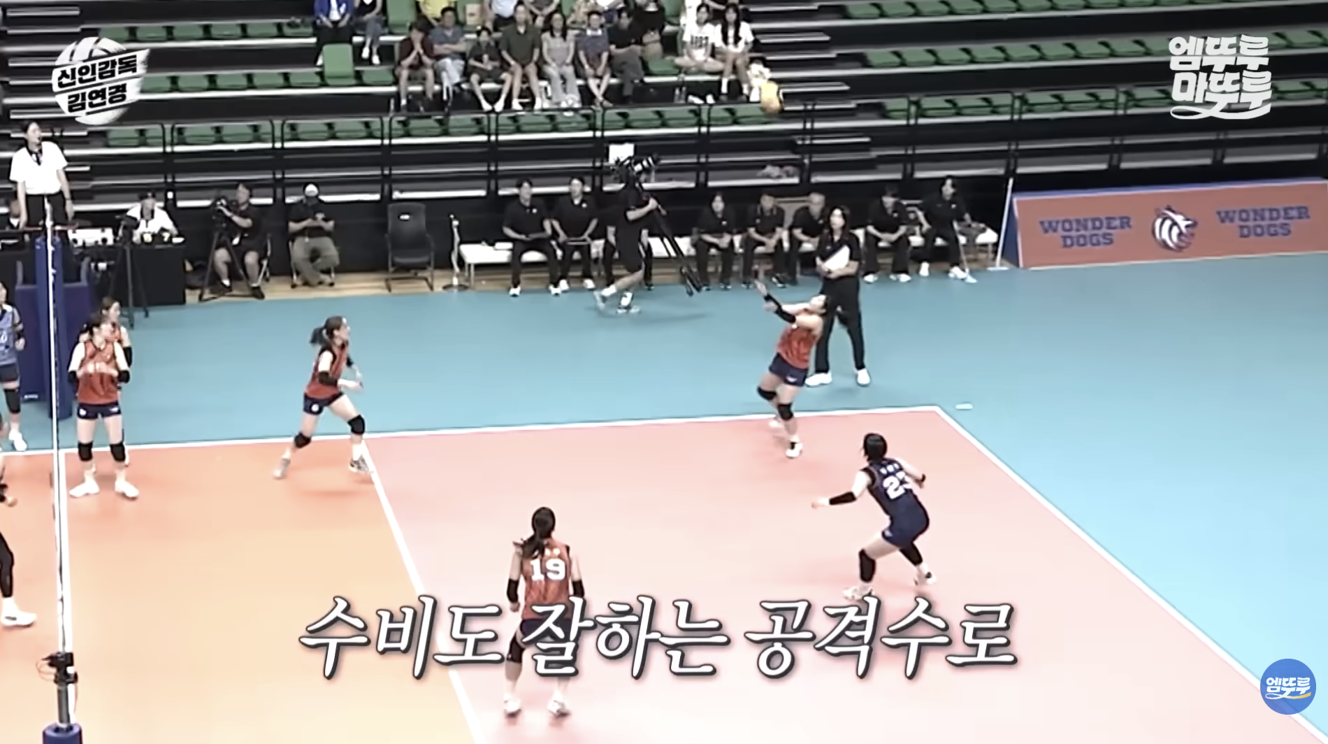 ⎯ 처음 선수 평가 때 문명화 선수는 예전 팀 감독으로부터 "아픈 손가락"이라는 평가를 받았습니다. 당시 코치에게 명화를 빠르게 만들어주면 최고의 보상을 하겠다고 약속하기도 했었대요. 그렇지만 빨라지지 않았다고. 성실하고, 머리 좋고, 공부하고, 다른 건 말할 것도 없는데 느린 게 문제라고 말했어요. 프로 때도 블로킹 기록이 좋았던 문명화 선수는 느리다는 단점에 집중하기보다는 감독의 전술에 따라 정확도를 높여 장점을 살립니다. |