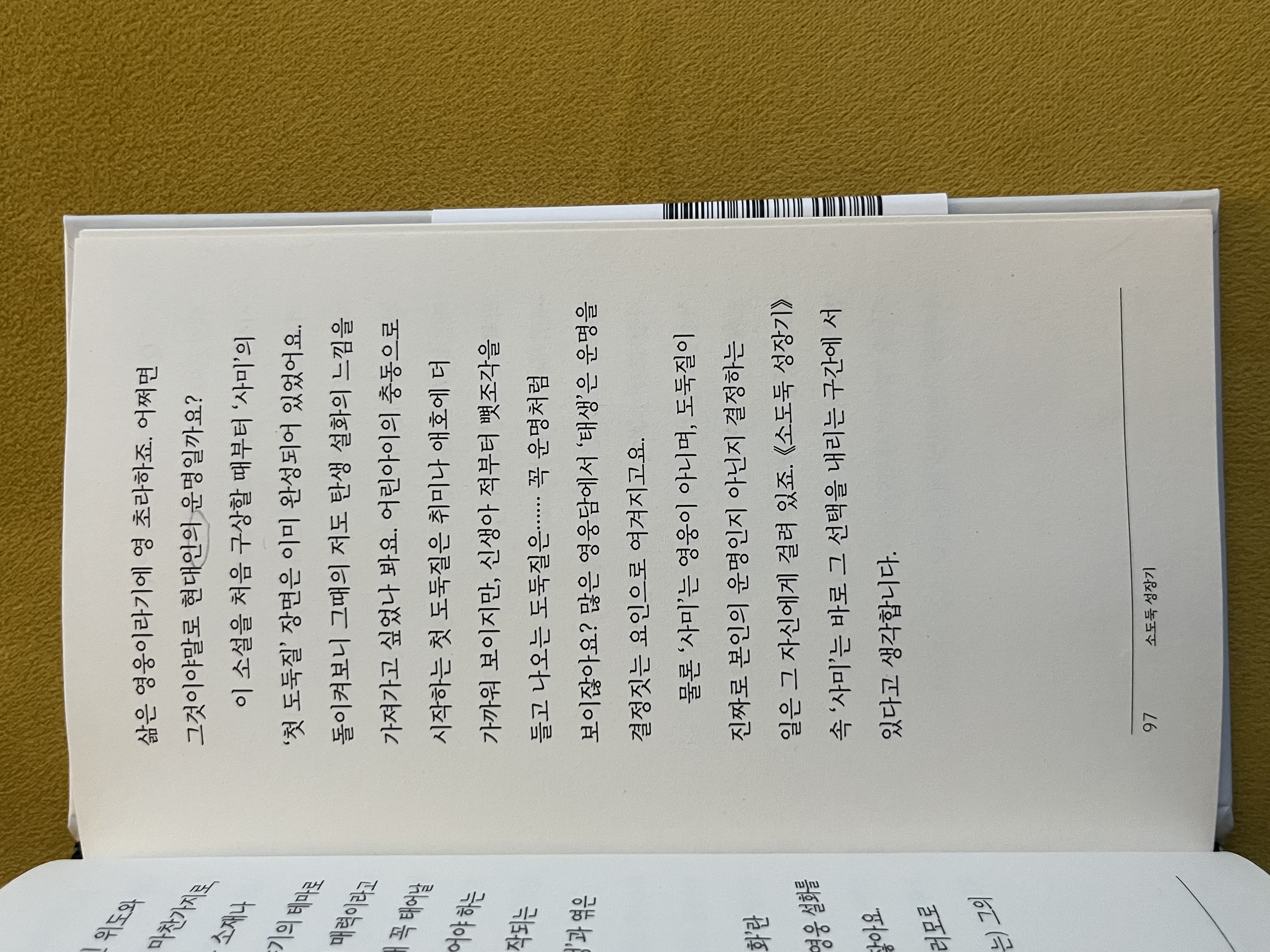 ⎯ 소설에서 주인공 사미는 '도둑질'에 재능이 있다고 서술됩니다. 날 때부터 엄마에게 있는 무언가를 훔치며 태어났기 때문이라죠. 소설은 재능인 듯 재능 아닌 그 재능을 따라 사미의 선택과 성장을 그리는데요. 저는 읽으면서, 날 때부터 갖고 있는 재능을 다루는 방식이 흥미롭다고 생각하는 동시에, 태어나면서 가지고 태어났기 때문에 또는 가지고 태어나지 않음으로 인해서 커가면서 서서히 스며드는 결핍을 주목한 점이 좋았습니다. 소설은 주인공과 그 외 인물을 통해 이 둘의 경우를 다루기도 하고요, 주인공과 인물들은 그 결핍을 소화해내기 위해 어떠한 선택들을 합니다. 재능이란 것은, 그리고 그 재능을 발휘한다는 것은 모종의 한계에 계속해서 부딪히는 일이고, 어쩔 수 없이 결핍과 관계를 맺는다는 생각이 듭니다. 또 한편, 재능은 있는 것으로 믿어야 안심되는 것이기도 하죠. 인간이 느끼는 존재 가치와 결여는 재능에서 오기도 합니다. 사미의 재능은 정말 도둑질이 맞을까요?
